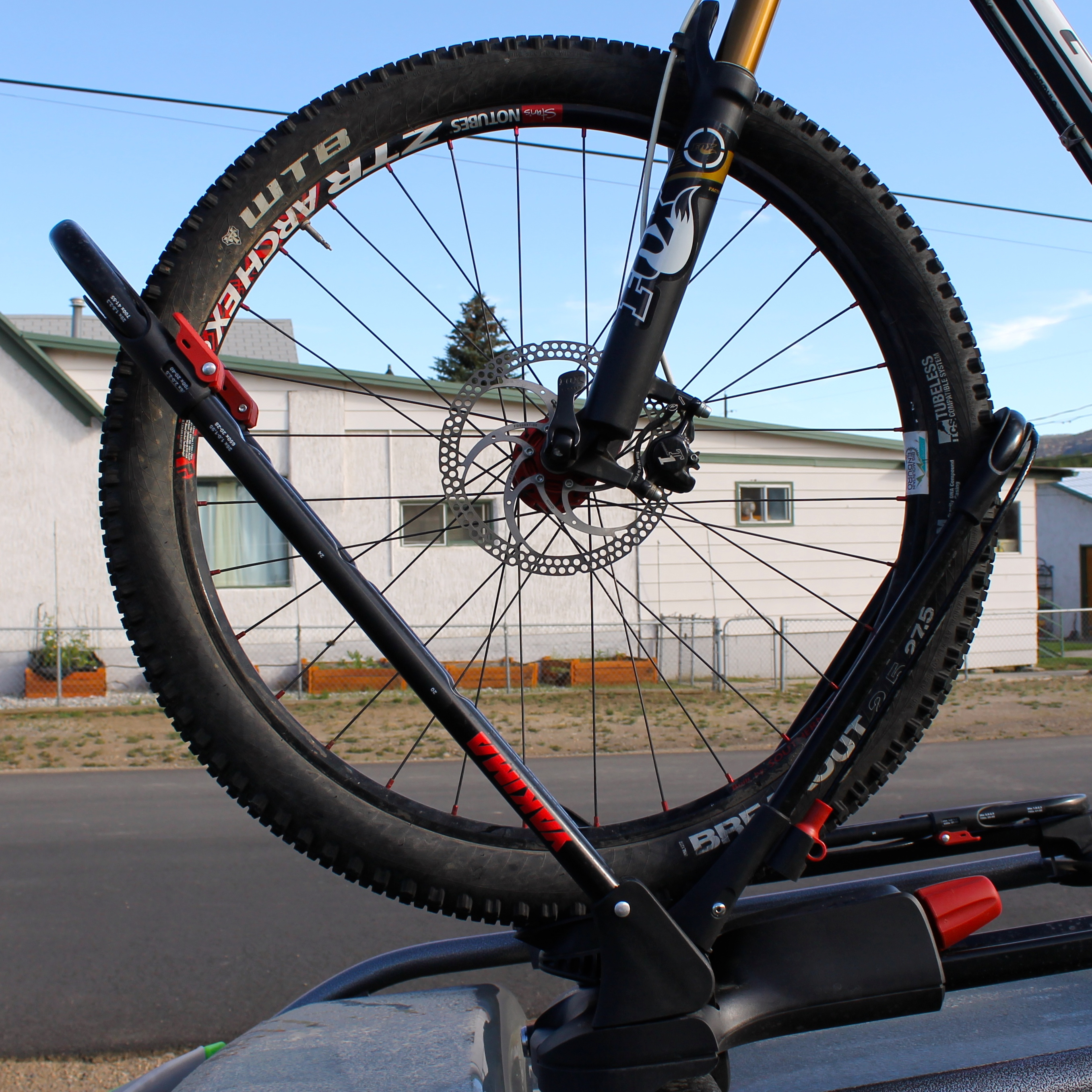 While it took a few words to describe that process, in real life it’s painless, fast, and oh-so-easy. Seriously, the days of removing your front wheel and messing around with a quick release clamp on your fork drop outs are long gone, and I’m so thankful! Not only is it way easier and faster, but you don’t have to worry about backing over your wheel or having enough room in the vehicle for your wheel.