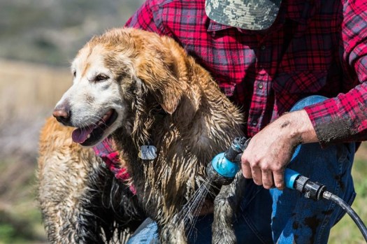 With its patented design, RinseKit retains the same water pressure as a conventional garden hose (55-75 psi), which allows the two-gallon water tank to be filled full without pump or electricity. Hook up the RinseKit to any faucet, which allows the water to be compressed and spring out from the nozzle through the hose. It provides a continuous spray for around five minutes before the tank dries up.