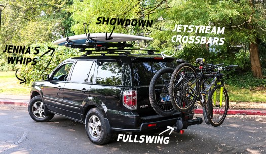 Beyond that, our interests are wide ranging. We both ride on the mountain and road, which means four bikes and appropriate sundries. We hike and camp, so we always roll with a couple of packs, a tent, and a trail cooking setup, plus bikepacking gear for overnights on the bikes. Fly fishing means we need rods, tackle, and waders. Hunting necessitates bows, a rifle, and camo. Climbing demands shoes, harness, a rope, and a small rack. And that doesn’t even get into skiing, surfing, kayaking, or any of the really unwieldy stuff that’s currently relegated to storage back home in Santa Fe, New Mexico.